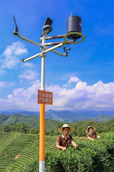 Équipement intelligent de surveillance météorologique dans un jardin de thé agricole capturé dans une plantation de thé du comté de Cangwu de la ville de Wuzhou, dans la région autonome Zhuang du Guangxi (sud de la Chine). (Photo / Yan Guihai)