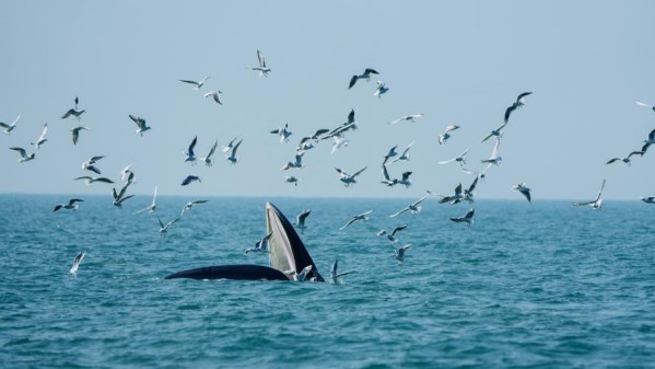 Une baleine de Bryde en train de se nourrir dans les eaux au large de l'île de Weizhou, dans la région autonome Zhuang du Guangxi (sud de la Chine), le 15 janvier 2021. (Photo : Liu Jinhai)
