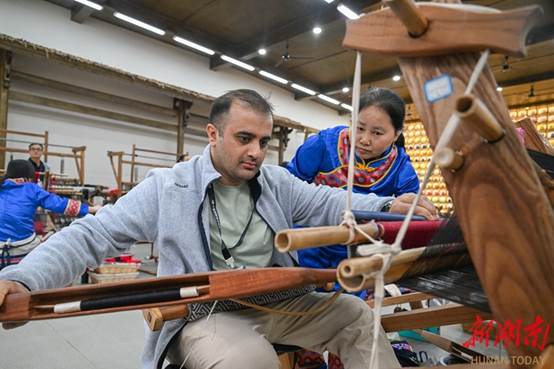 Accueil > Hunan News > > Des toursites étrangers expérimentent la technique de tissage de brocart Tujia
