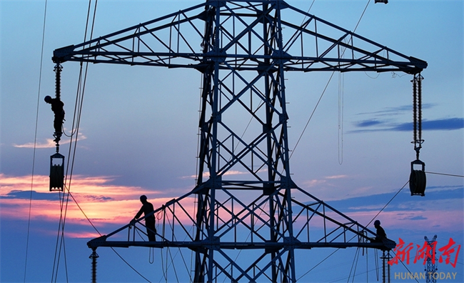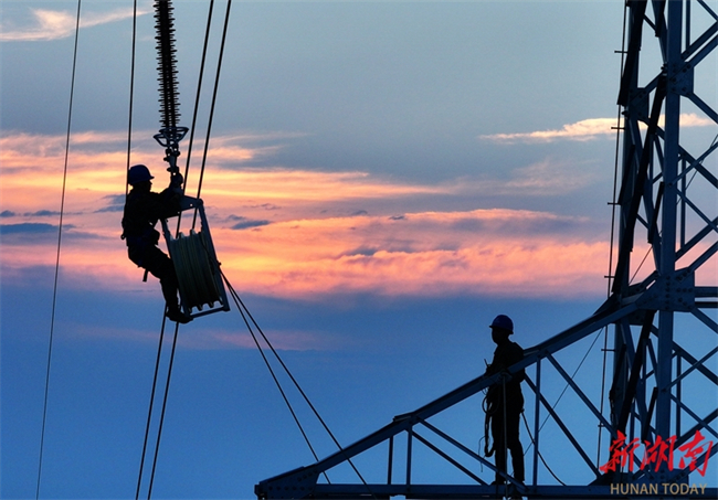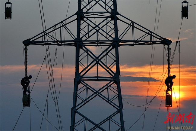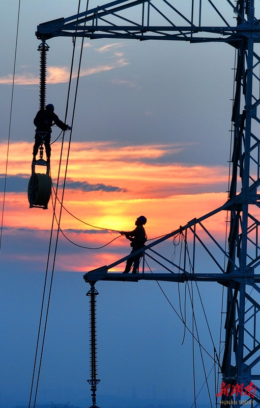 Récemment, dans le bourg de Yumushan, situé au district de Zhengxiang à la ville de Hengyang, le personnel de construction effectuait des travaux de pose de câbles sur une haute tour. Une fois le projet « L'électricité du Ningxia au Hunan » entièrement mis en service, et afin d'utiliser pleinement les ressources et de garantir la fiabilité de l'alimentation électrique, Power Supply Company Hengyang de la State Grid a accéléré la mise en œuvre des travaux de renforcement et de modernisation du réseau électrique dans sa zone de compétence. Le personnel de construction est occupé à installer des lignes de tours de transmission, s'efforçant de garantir une réalisation du projet de haute qualité et dans les délais. (Photo par CAO Zhengping)