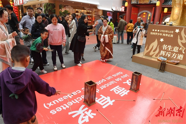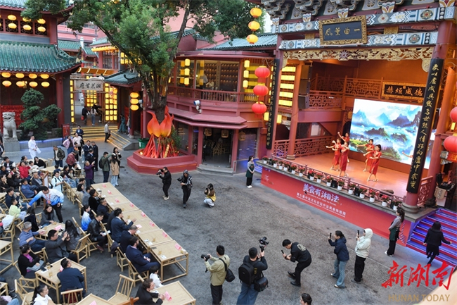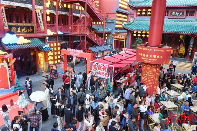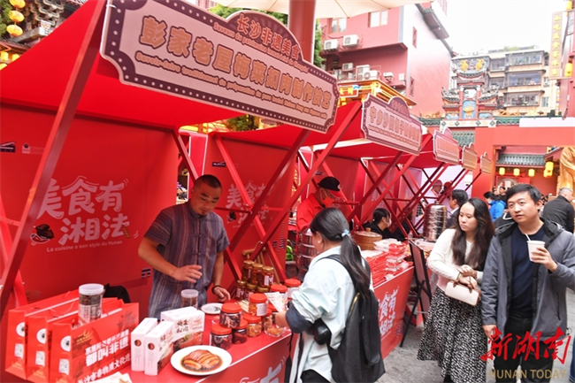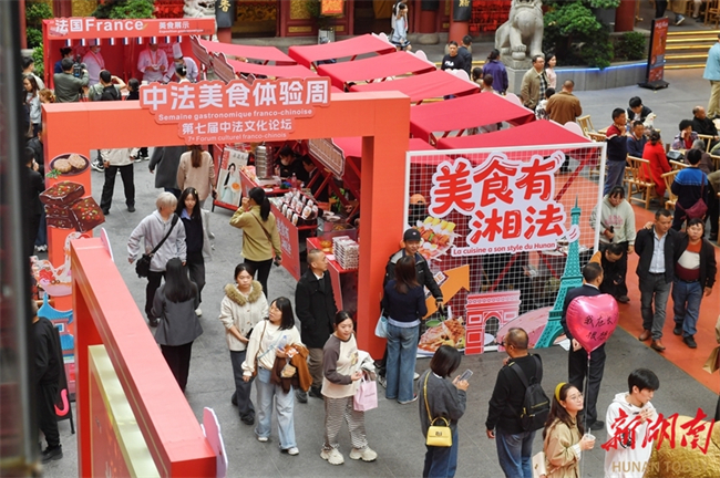 Le 2 novembre, la Semaine gastronomique franco-chinoise a été lancée au Palais du Dieu du Feu, intitulé également le Restaurant Huogongdian, dans la rue Pozi, à Changsha. Des snacks typiques de Changsha et des mets novateurs intégrant la cuisine française et la cuisine hunanaise étaient servis sur site. De plus, de variés spectacles du patrimoine culturel immatériel se sont mis en scène, incluant le Tanci de Changsha (récit chanté de Changsha), l'Opéra du Hunan, l'Opéra fleur-tambour et le théâtre d'ombres chinoises. Un nombre de touristes étaient attirés et en profitaient ici. (Photo par XU Xing)