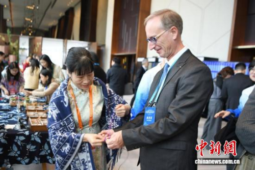 Le 3 novembre, le 7e Forum culturel sino-français a débuté à Changsha (Hunan), avec une exposition sur le patrimoine culturel immatériel du Hunan, organisée autour du thème du « fil de soie » et mettant en valeur l'artisanat d'art comme le papier découpé de Changsha et la broderie du Xiang (une dénomination brève du Hunan). Sur place, les artisans ont fait la démonstration de leur savoir-faire, présentant tous azimuts le charme du patrimoine immatériel du Hunan, ce qui a attiré de nombreux invités français, désireux de vivre l'expérience par eux-mêmes. (Photo par YANG Huafeng)