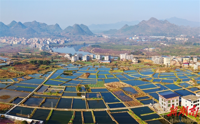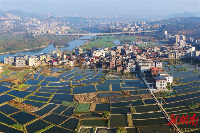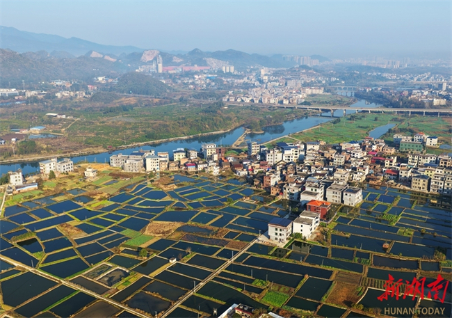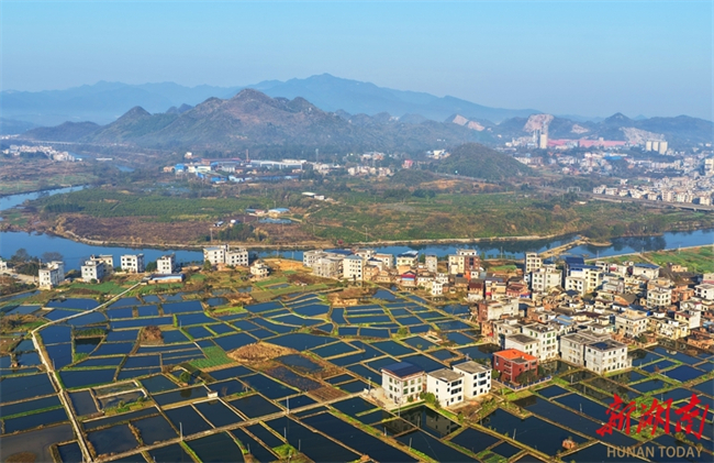 Le 8 janvier, dans le village de Jinghan, situé au bourg de Zhuquan dans le comté de Jiahe, les étangs de poissons, les habitations rurales, les rivières et les routes formaient ensemble un nouvel paysage de revitalisation rurale mettant en avant une industrie prospère, un environnement écologique magnifique et une vie florissante. Ces dernières années, la région a tiré parti de ses abondantes ressources en eau pour développer l'aquaculture écologique, contribuant ainsi à l'augmentation des revenus des villageois. (Photo par HUANG Chuntao)