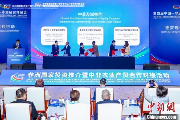 La conférence de promotion des investissements dans des pays africains, également l'événement de mise en relation en faveur de la coopération industrielle et commerciale dans le secteur agricole sino-africain, s'est tenu le 13 juin à Changsha. Au cours de cette rencontre, neuf villes amies sino-africaines ont conclu un accord de jumelage sur place, qui s'ajoutent à celui déjà signé précédemment entre la province du Hunan et la province de Gauteng en Afrique du Sud. Au total, dans le cadre de la 4e Exposition économique et commerciale sino-africaine, dix nouvelles villes amies ont été établies entre la Chine et l'Afrique. Jusqu'à présent, le Hunan abrite en tout 120 villes amies internationales.