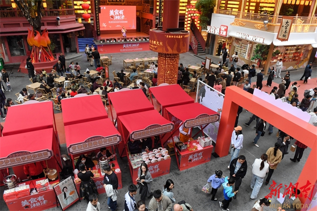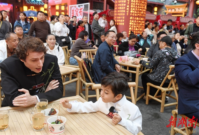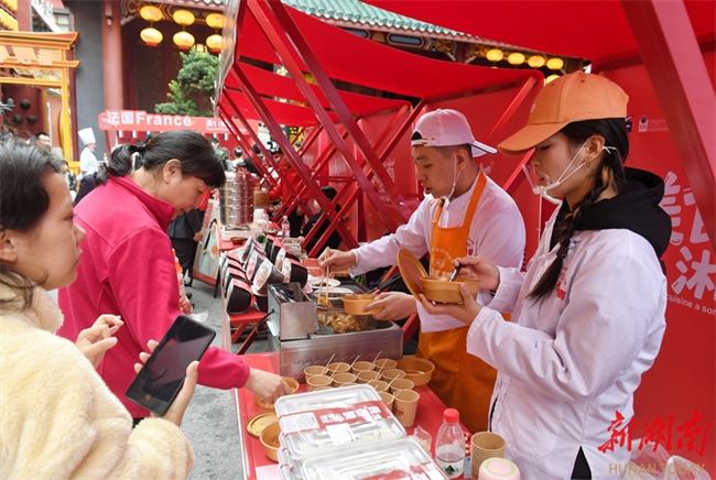 Le 2 novembre, la Semaine gastronomique franco-chinoise a été lancée au Palais du Dieu du Feu, intitulé également le Restaurant Huogongdian, dans la rue Pozi, à Changsha. Des snacks typiques de Changsha et des mets novateurs intégrant la cuisine française et la cuisine hunanaise étaient servis sur site. De plus, de variés spectacles du patrimoine culturel immatériel se sont mis en scène, incluant le Tanci de Changsha (récit chanté de Changsha), l'Opéra du Hunan, l'Opéra fleur-tambour et le théâtre d'ombres chinoises. Un nombre de touristes étaient attirés et en profitaient ici. (Photo par XU Xing)