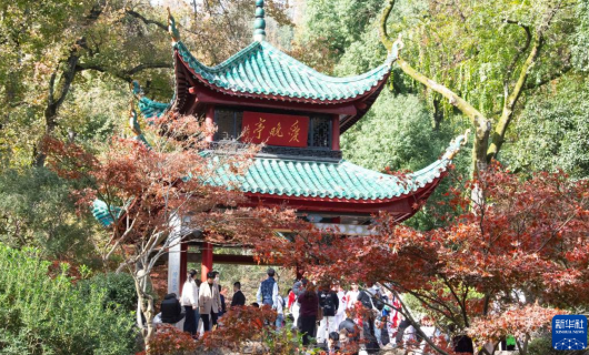 Sur le site touristique du mont Yuelu, à Changsha, dans la province du Hunan (centre), les feuilles d'érable sont entrées dans leur meilleure période d'observation, et le pavillon d'Aiwan est devenu un point de visit...