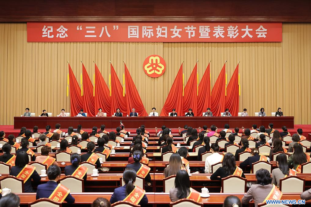 BEIJING, 3 mars (Xinhua) -- Réunion organisée par la Fédération nationale des femmes de Chine pour marquer la Journée internationale des femmes, célébrée le 8 mars, et rendre hommage à des femmes modèles exceptionnelles à travers le pays, à Beijing, capitale chinoise, le 2 mars 2026.