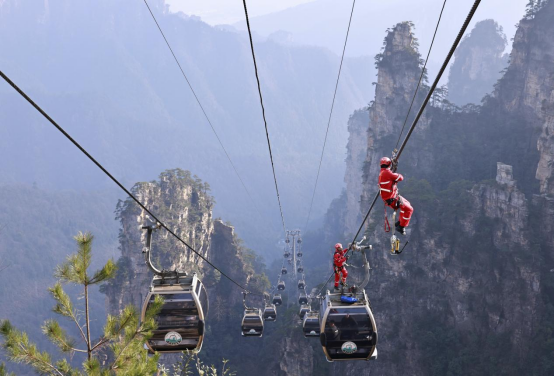 Le 15 janvier, le parc national forestier de Zhangjiajie, situé dans la province du Hunan (centre), a tenu un exercice de simulation de sauvetage en haute altitude en hiver sur le téléphérique du mont Tianzishan. Cet exercice visait à tester la sécurité du téléphérique et les capacités de réaction rapide des différents services de la zone touristique, afin de garantir la sécurité des touristes.