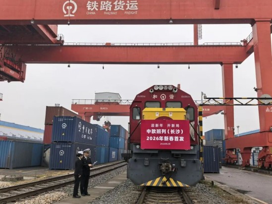Au 23 février, le service de trains de fret Chine-Europe à Changsha avaient permis d'acheminer 193 trains d'importation et d'exportation en 2026, marquant une croissance de 101,04 % en glissement annuel. Ce total comprend 128 trains d'exportation, soit une hausse de 70,6 % par rapport à l'année précédente, et 66 trains d'importation, avec une forte augmentation de 220,38 % par rapport à l'année précédente.