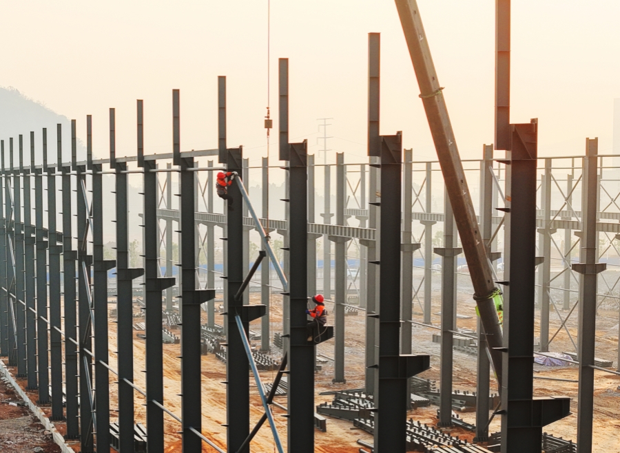 Le 18 décembre, dans la zone de développement de haute technologie de Jiahe, des ouvriers réalisent la construction d'un bâtiment standard à structure en acier. Ces dernières années, s'appuyant sur les avantages de son industrie de forge et de fonderie, le district a davantage optimisé son environnement commercial, accéléré la mise en œuvre des projets dans les parcs industriels, contribuant ainsi efficacement à la modernisation, à la transformation et à l'amélioration qualitative et efficiente de la chaîne industrielle. (Photo par HUANG Chuntao)