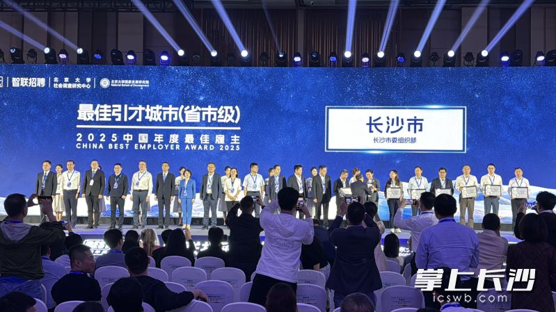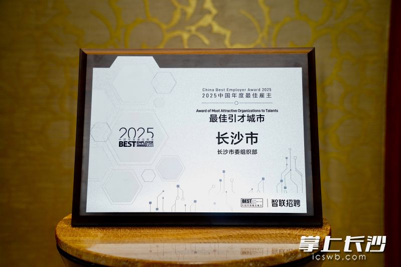 La cérémonie de remise du Prix du Meilleur Employeur de Chine 2025 s'est tenue à Sanya, dans la province du Hainan, le 19 décembre 2025. À cette occasion, la ville de Changsha a été honorée du « Prix des organisations les plus attractives pour les talents ».