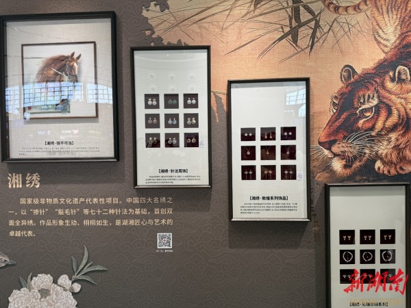 Cette exposition rassemble une vingtaine d'éléments représentatifs du patrimoine culturel immatériel, dont la broderie Xiang, la broderie Miao, la peinture Miao, le brocart Dong, le brocart Tujia, la céramique Tongguan du Four de Changsha, la technique de fabrication du thé noir d'Anhua, ainsi que les coutumes traditionnelles de l'écriture féminine (Nushu). À travers des illustrations, des caractères, des objets et des scénarios, l'exposition associe un langage visuel contemporain à des éléments d'esthétique traditionnelle, mettant en valeur de manière vivante la beauté artisanale et la dimension humaine du patrimoine culturel immatériel du Hunan.