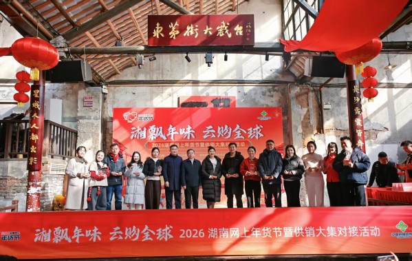 Le 2 février, le Festival en ligne des achats pour le Nouvel An chinois 2026 du Hunan ainsi que la Journée de Grand marché de l'approvisionnement et de la vente se sont tenus à Changsha. L'événement a adopté un mode d'interaction « en ligne + hors ligne », intégrant profondément la culture du Hunan et la consommation du Nouvel An chinois, offrant ainsi aux citoyens un festin de saveurs festives immersif autour du « flânerie + shopping + dégustation ».